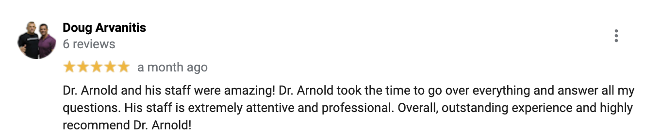 Dr. Arnold has completed hundreds of hours of advanced continuing education and treats dozens of complex restorative and cosmetic cases every month.